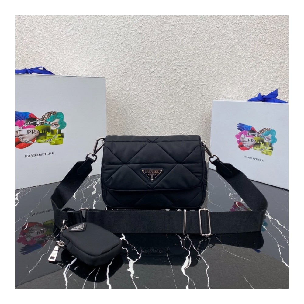프라다 로고 나일론 퀼팅 패딩 숄더백