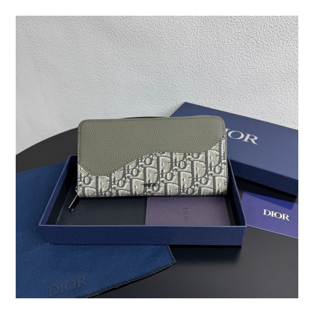디올 새들 지퍼 장지갑