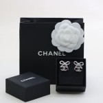 샤넬 리본 CC 로고 크리스탈 실버 귀걸이